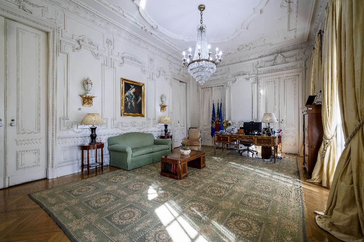 Destaca-se a escadaria central e o salão, atual gabinete do Presidente do Supremo Tribunal Administrativo.